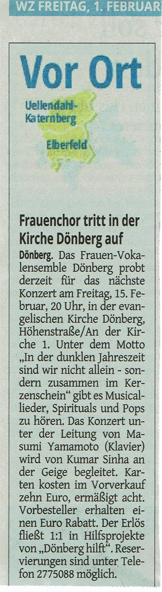 Freitag, 15.02.2019 - "KONZERT DES FRAUEN-VOKALENSEMBLES"